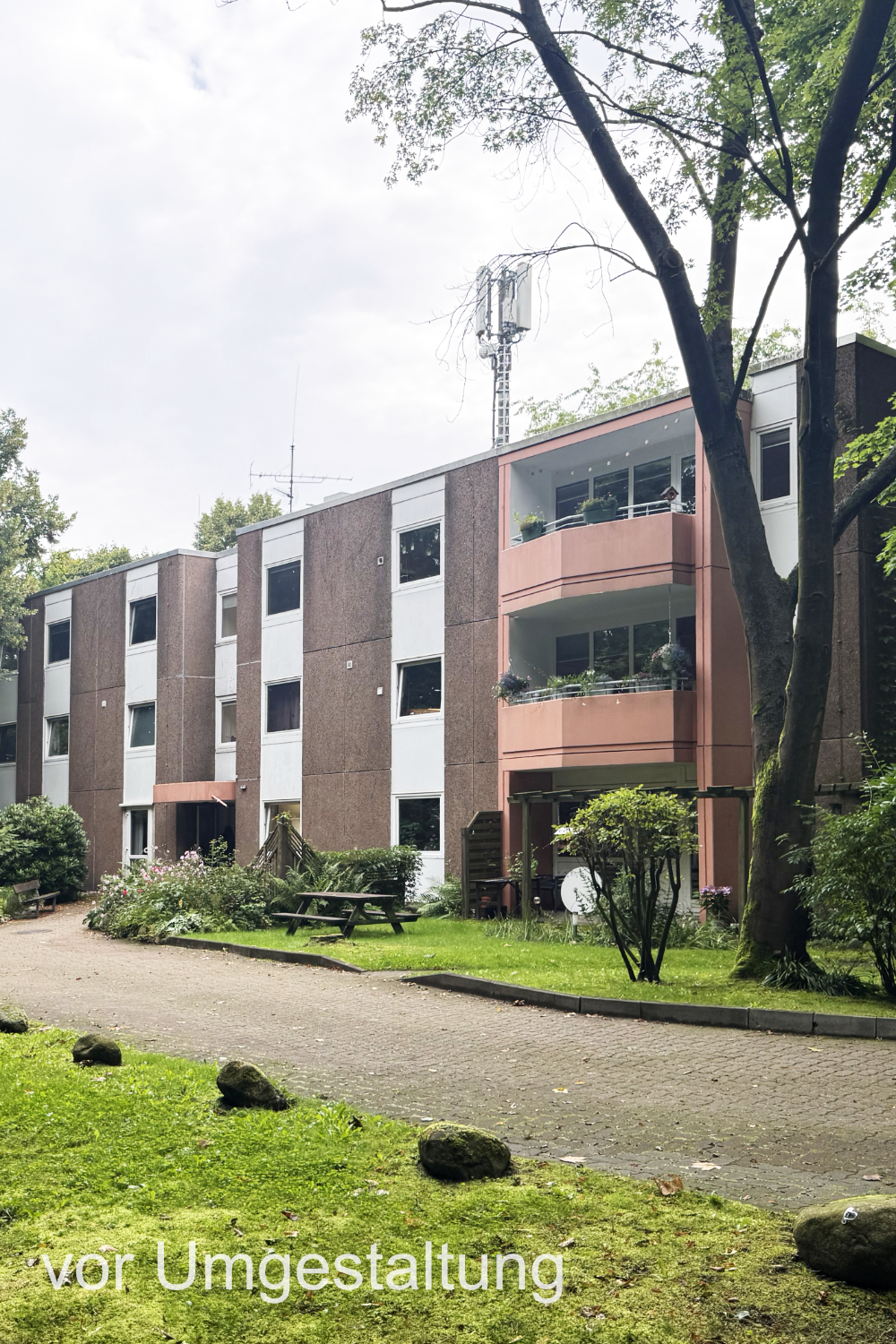Der Eingangsbereich des Wohngebäudes des Sozialkontors in Hamburg Farmsen sollte freundlicher und zugleich zeitgemäßer umgestaltet werden. Es wurden Maßnahmen im Bereich des Entrees außen sowie im Haupteingangsbereich geplant. Die Außenanlagen sollen im Bereich des Einganges umgestaltet und mit neuen Aufenthaltsqualitäten versehen werden.